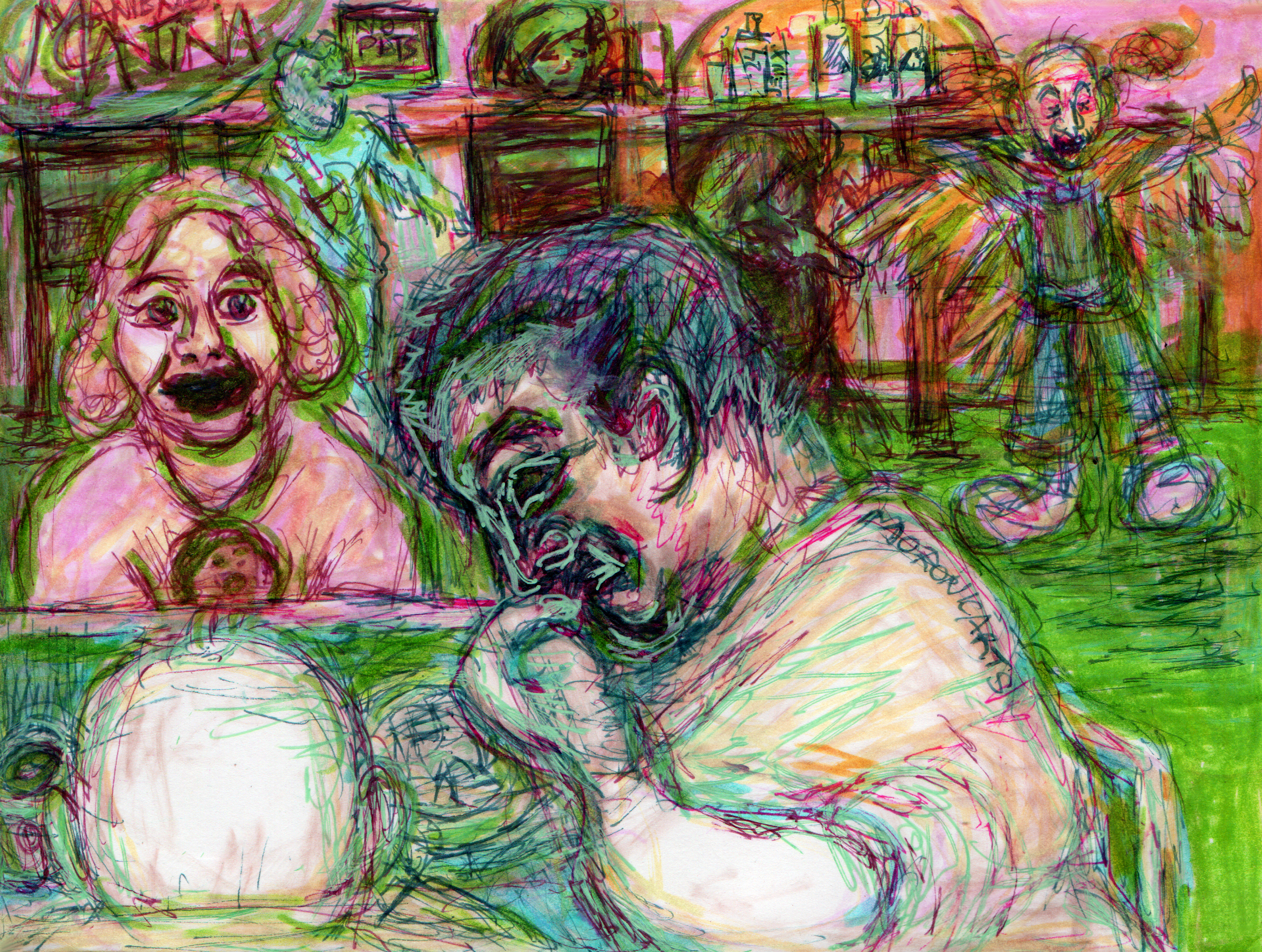 “D’aaah-is it made from real fingers?” Fellow Poopy Groupy Undead Greg Schneissder asks Bernadette as he slithers over to the table.