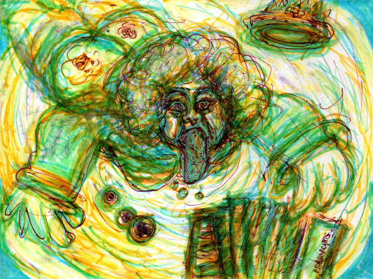 Yet, communal narcadoodle Bernadette graces the cover of the Manteno Sentinel again for her charity work playing accordion and kazoo show-tunes at the Manteno Optimal Club. Her aunt, slumlord, and shapeshifting humanoid turkey vulture Sonya Moran helped get her the press about some upcoming event crap. No wonder people want to yeet her.