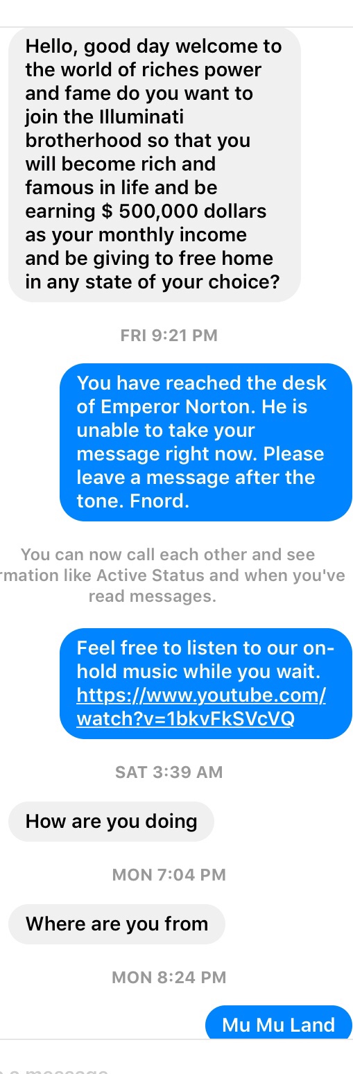 This post has been brought to you by Emperor Norton, and the letters K L F. Fnord.