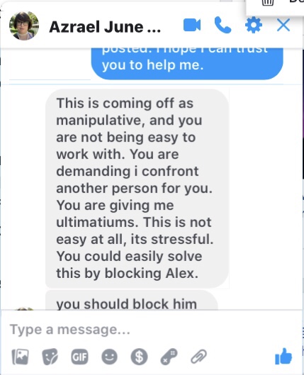The sad little admin took my warning to heart and used it as a means to triangulate her friends against me in her smear campaign, because that’s what you do if you’re a narcissist.