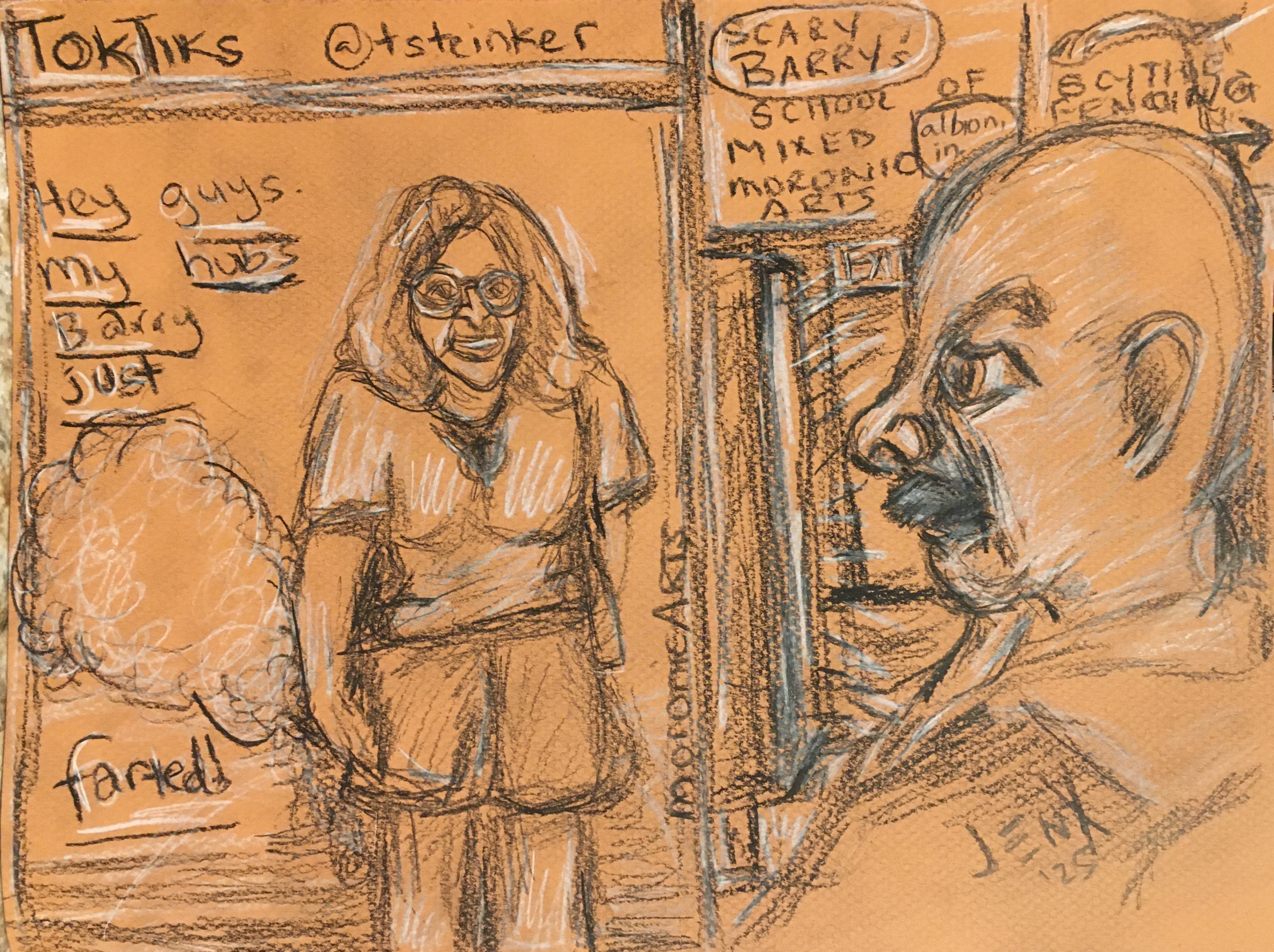 Midwestern housewife Scary Terry Steinke Reynolds has made a new TokTiks account to hopefully earn extra dough while otherwise sitting at home. Meanwhile her fallen-from-grace college president and former road test proctor husband Scary Barry runs his school of Mixed Moronic Arts. Between instructing Albion, Indiana folks howon the important practices of scythe fencing and psychic self-defense, Barry keeps an eye on his wife, who just ripped a big one.