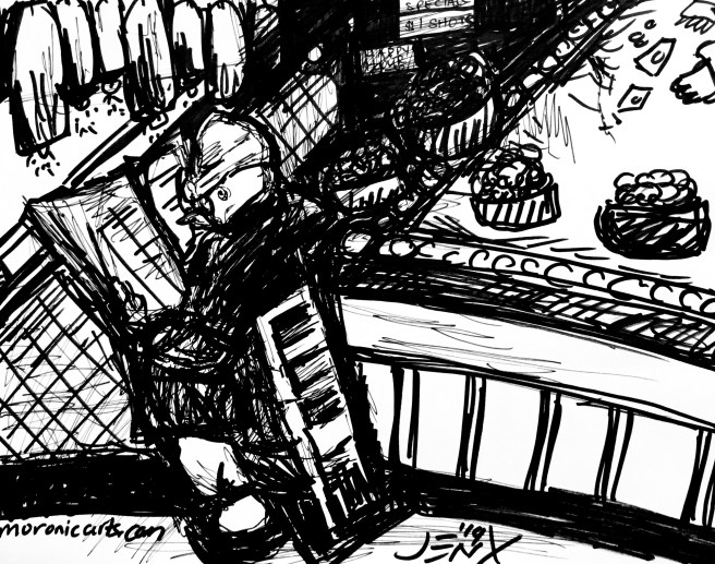 Doris Krabalsky is getting frustrated at the lack of interest in her pyramid schemes, despite her best attempt to convince strangers on the street that essential snake oils can cure all the ailments. She heads to a local cafe to read up on marketing tactics so she can hopefully become the bossbabe she wants to be when she grows up someday.