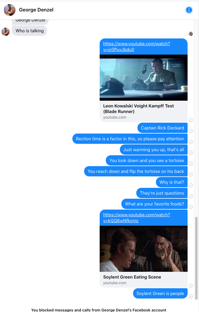 “I know, I know, I know…I will meet you tonight at the show, M’lady Madame. I have long red hair, an orange neckbeard and I wear a black fedora.”