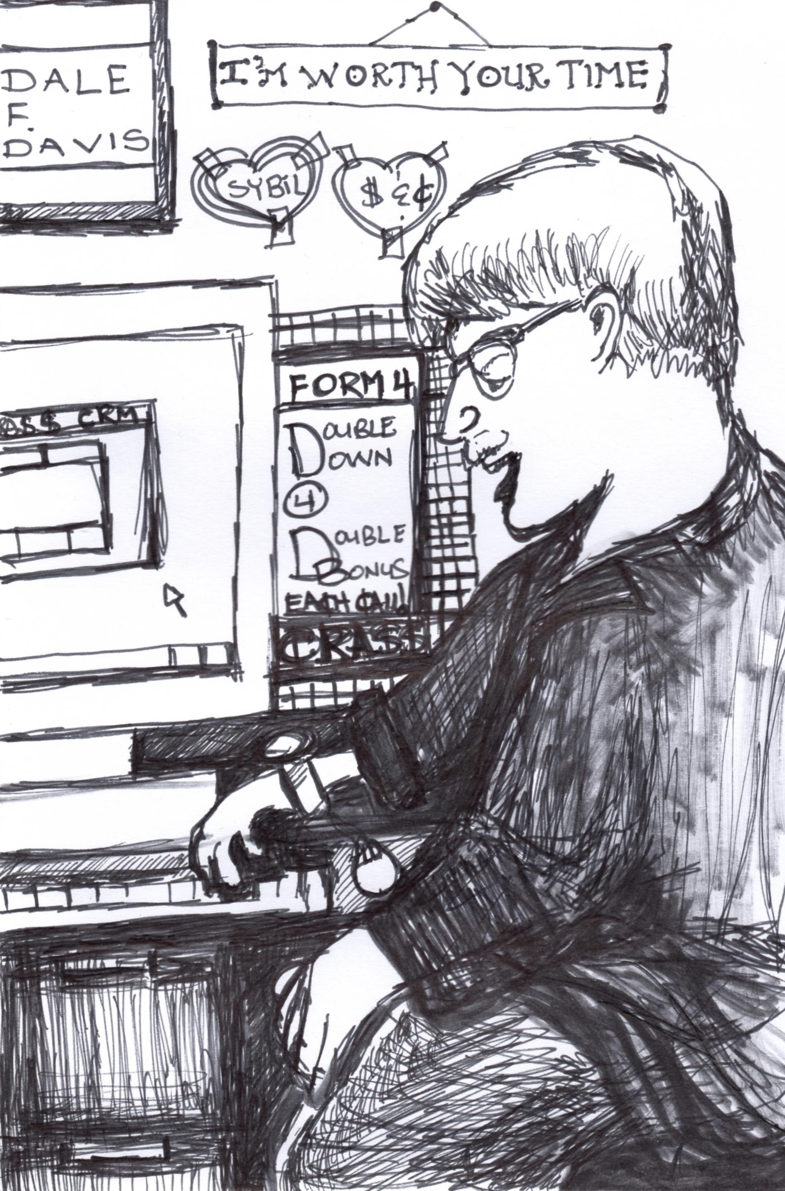 CRASS Debt Collector Dale Davis is all by his lonesome in his Kankakee apartment, wishing his boss Sybil Kibble would come there to kiss him, so they could get married and make dollars and cents together.