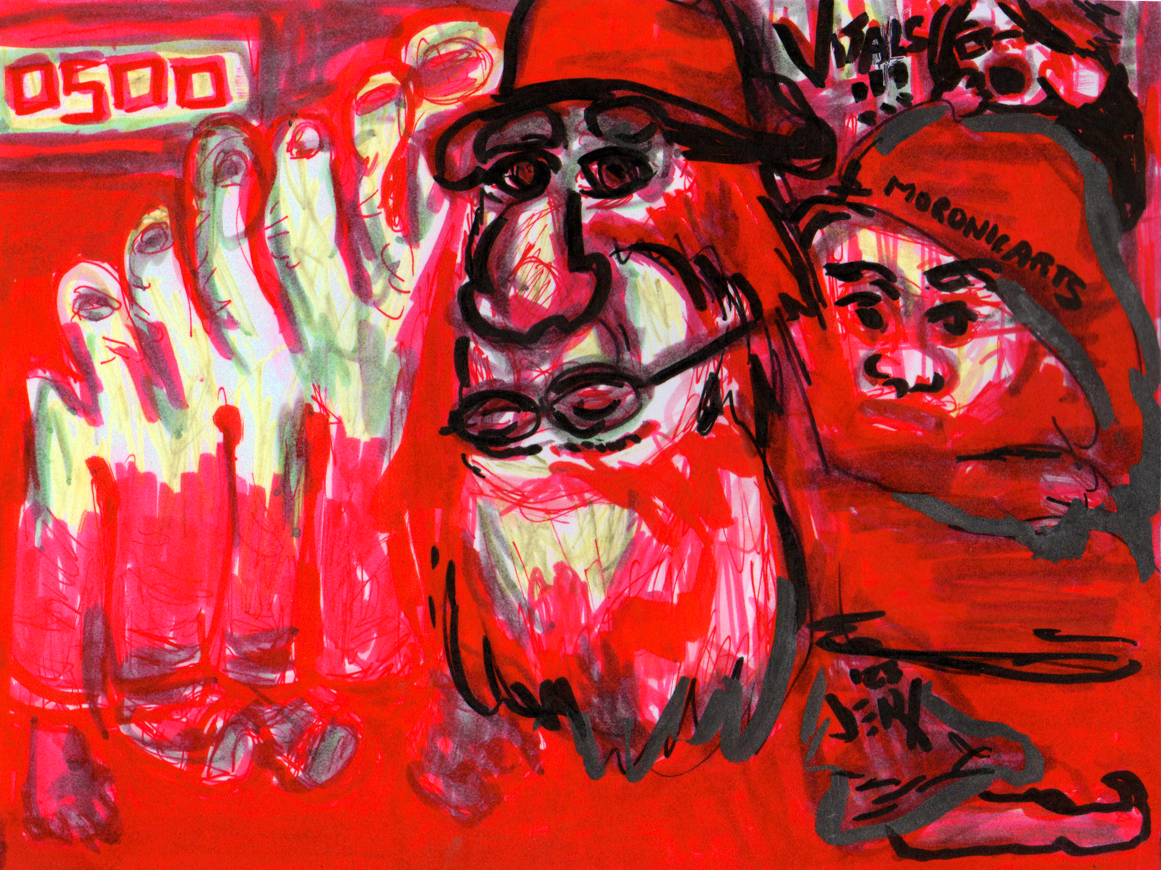 A line forms outside the CRASS washrooms. Tara Bull joins the queue. “Why are people taking so long?” Tara mumbles under her breath.