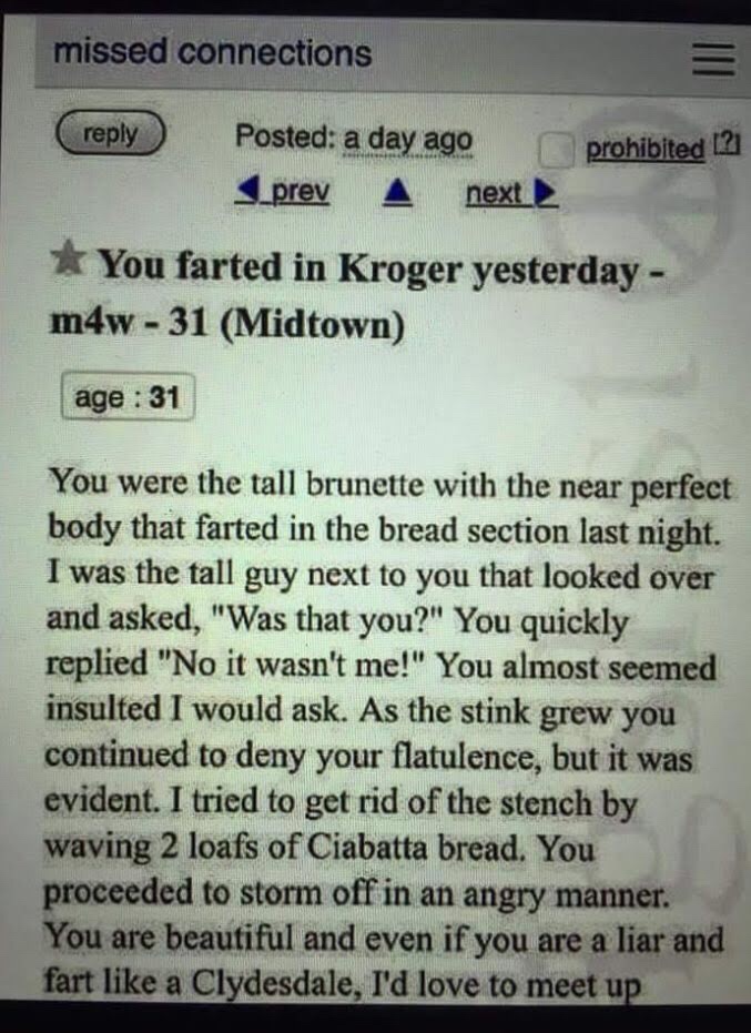 Bourbonnais cinema clerk, neckbeard and communal narcissist Damien Ulysses Hurlbutt really wants to reconnect with a m’lady he saw in a Kroger grocery store. Do you think she will respond? He fudged his age a bit, typical con job. Maybe she will come into Teirant-13 Cinemas so he can catch a whiff. Maybe.