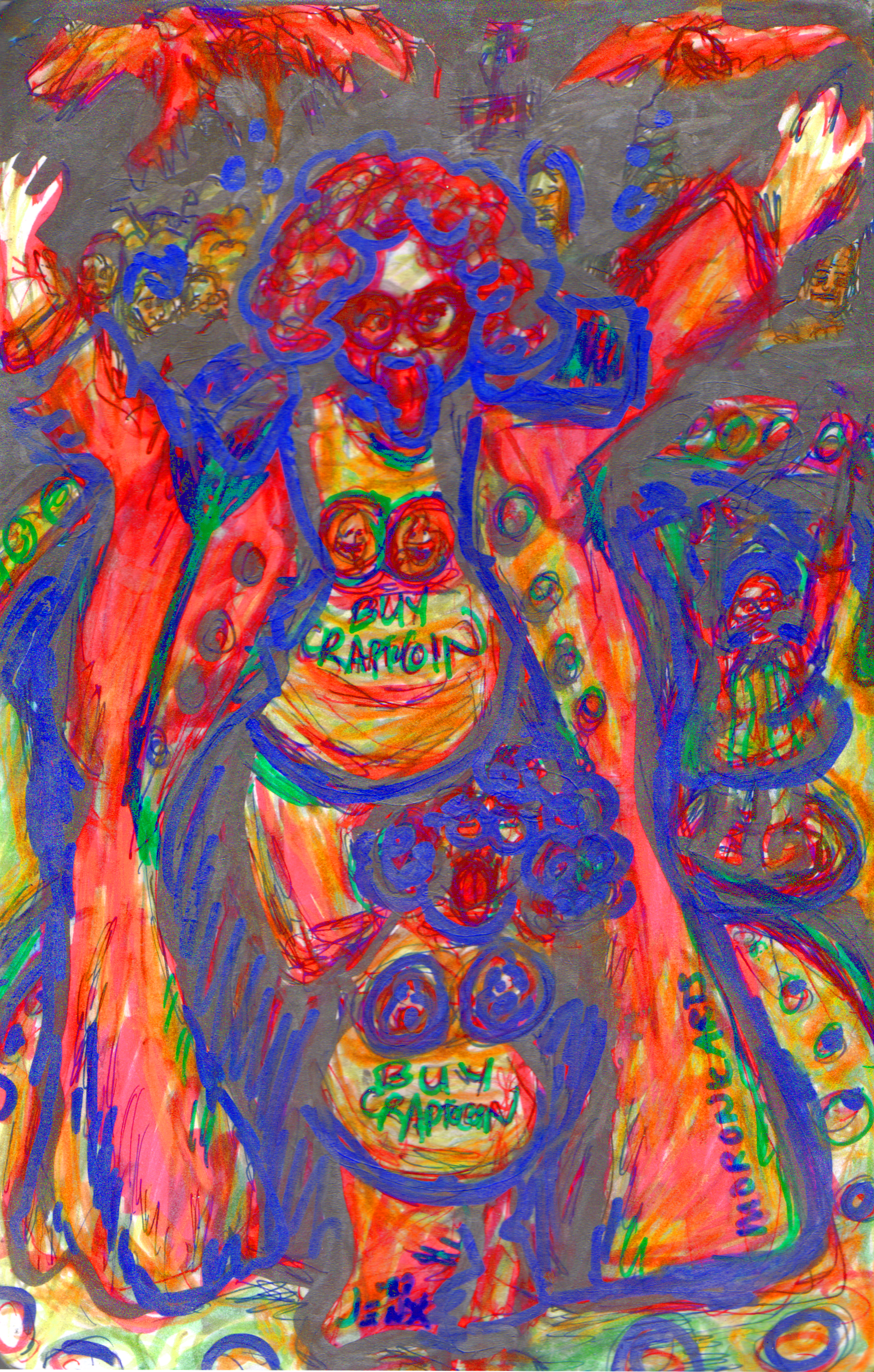 “Nope, Crabby crafting. Today I will introduce you all to the art of the paper-craft. Construction paper, glue and crayons generously supplied by Peppi’s Portapotties! Look for my face on the sign.”