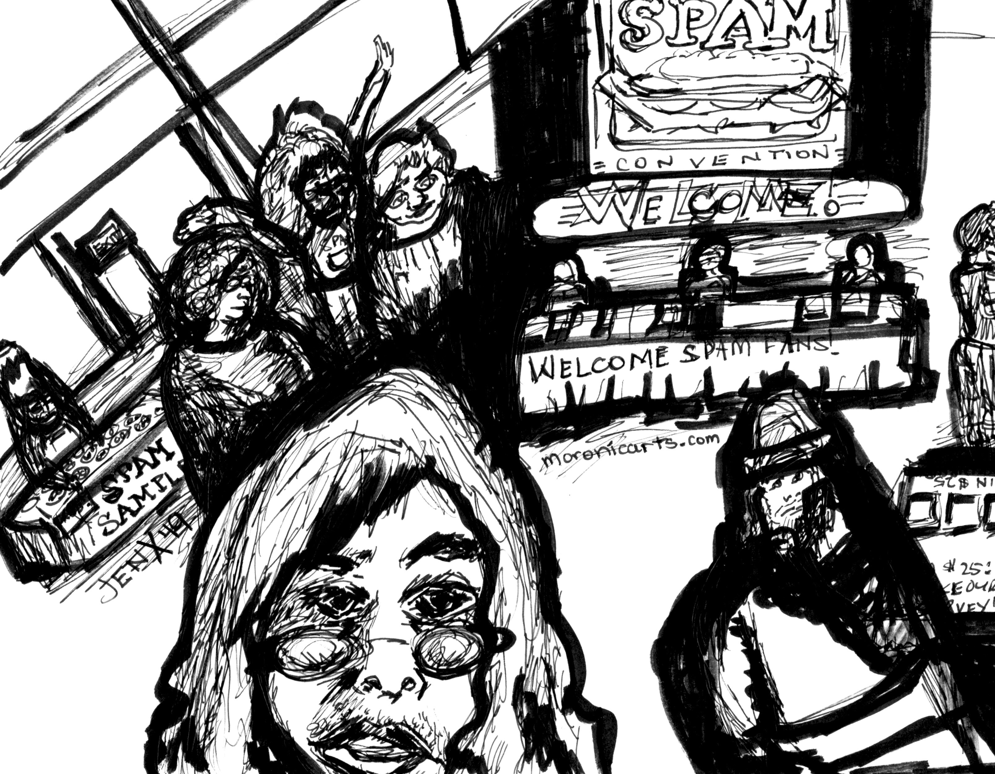 Junk email broker, failed film student and nextdoor sociopath Pat Oswald Splatt ventured over to the Kankakee County Spam convention with high hopes to rake in new customers to rip off bombarding their inboxes with unsolicited commercial crap for fun and profits.