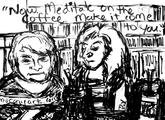 “I never drank coffee while I was in college. I drank pop,” Gothic Diana Ross complains to the Buckstars staff about her coffee again.