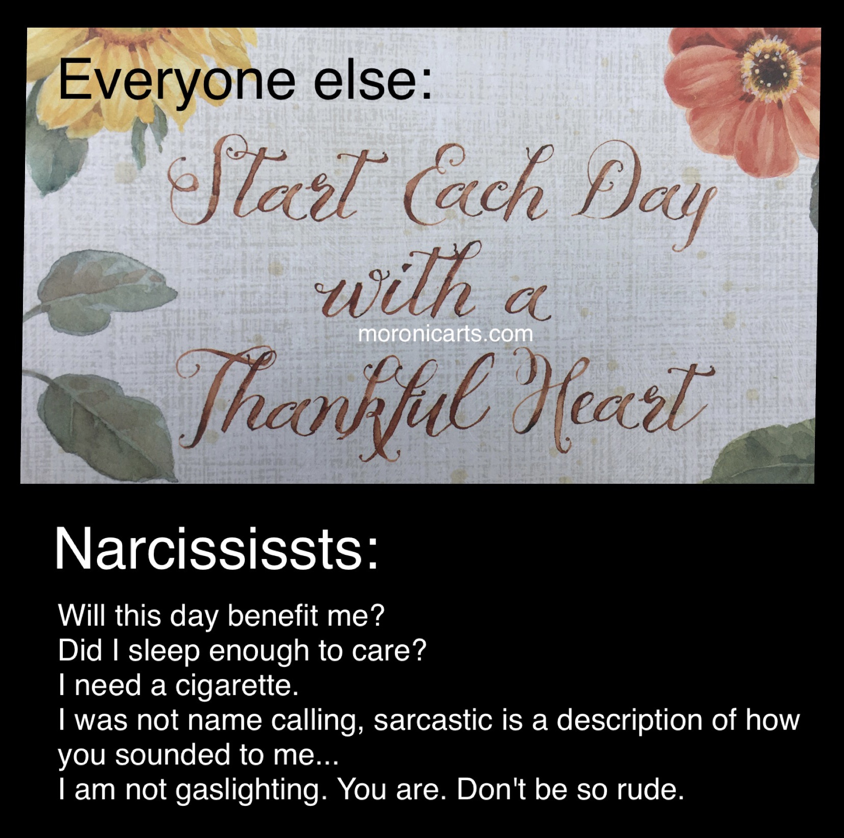 Of course, I called him on it. Like most narcissists and sociopaths, he took no responsibility for his actions and instead made the choice to gaslight. No, heavens forbid he apologizes and changes his ways. Like a typical imbecile, he asked me for an apology for, you know — my trying to teach him empathy. In other words, blame-shifting.