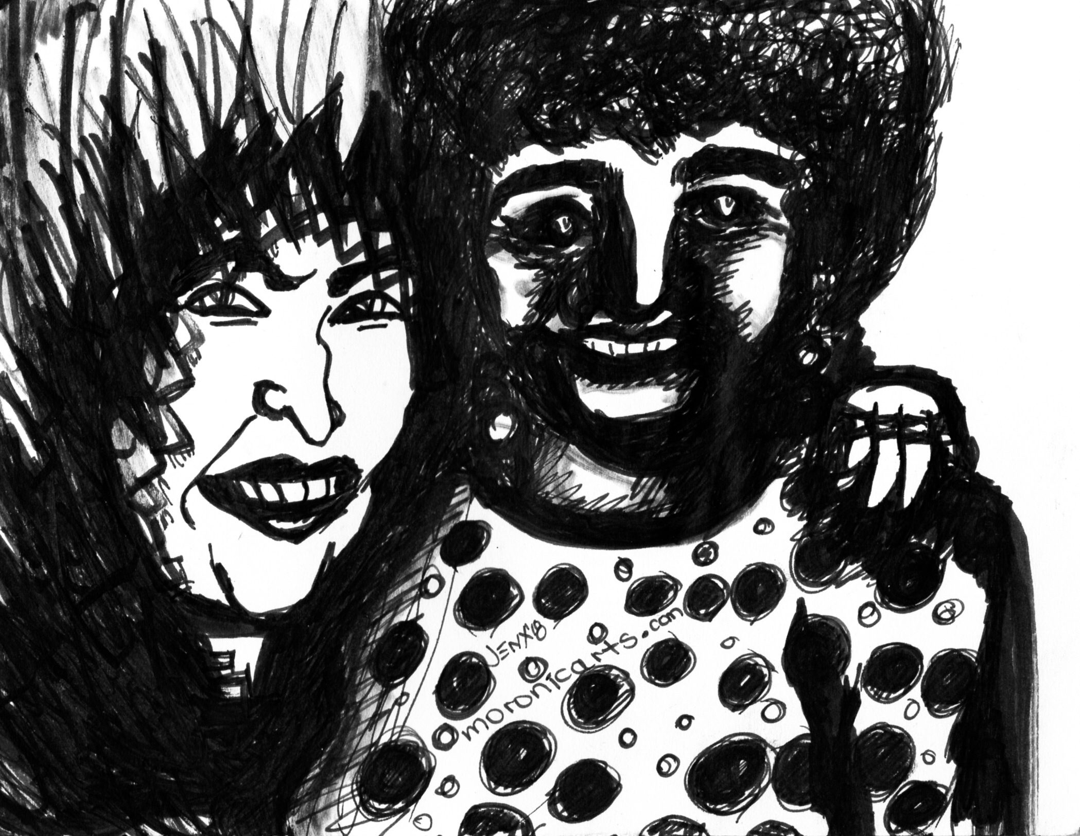 In the middle stands Kankakee’s very own Pearl Josephine “PJ” Hurlbutt. She wears the same muu-muu inside and outside the house, every day of the week. She even had worn it into her call center job at CRASS, before she retired. Sybil Kibble thinks PJ is “just swell” and considers PJ her best friend.