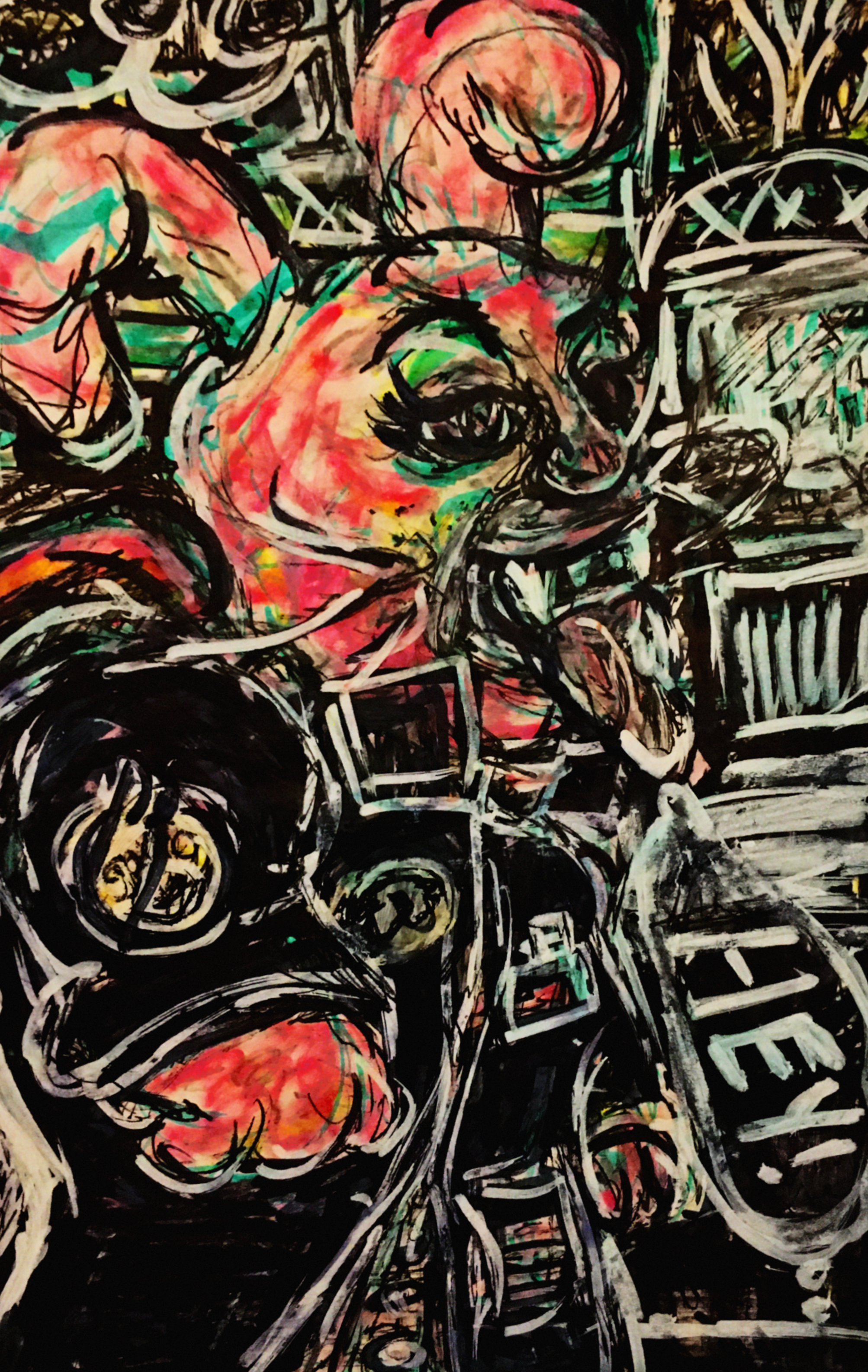 Sybil walks by Gothic Diana Ross in the men’s room, who is looking in the mirror, applying her jet-black eyeliner. She pinches a huge loaf in the stall next to Wally Green, who is busy whizzing away in the urinal. Sybil flushes but does not clean up the mess on the seat, flinging the door wide open with her arm. She makes a beeline for the sink and spots Diana sarcastically chortling away at the Gothic Diana Ross and the Midnight Supremes poster on washroom wall.